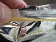 チャックをはがした跡(線状にシールされていた)