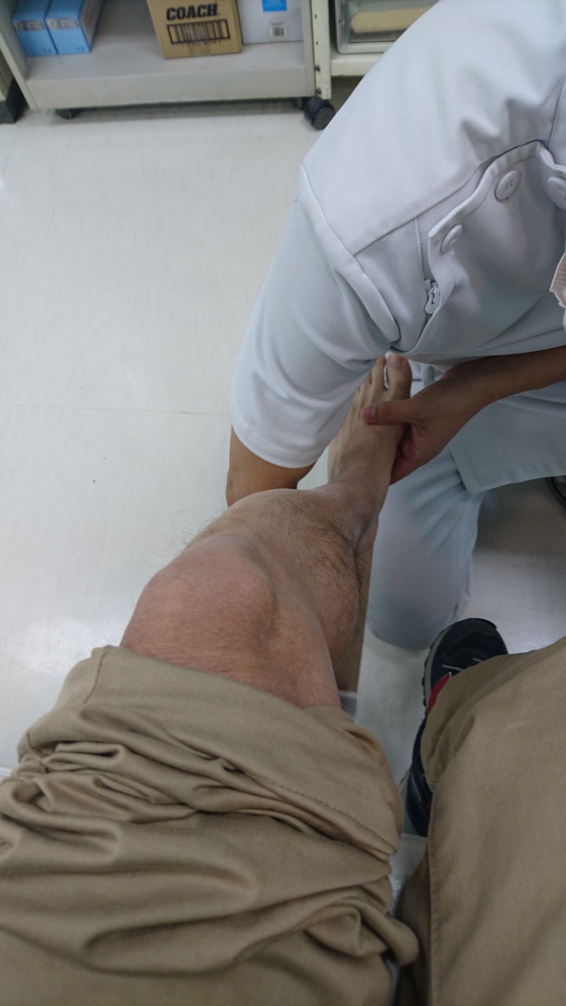 まず超音波で炎症を止めてもらい、テーピングで固定。